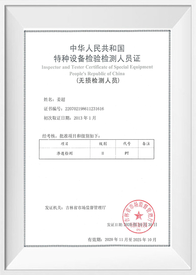 Teastas Cigire agus Tástálaithe de Threalamh Speisialta Poblacht na Síne Daoine na Síne